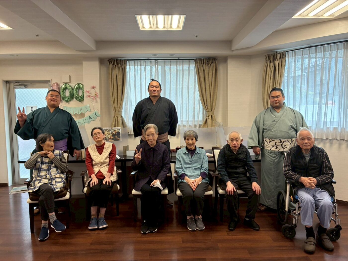 今日は東住吉区今川の福祉会館を宿舎としている放駒部屋の若手お相撲さん3人が施設に来られました。