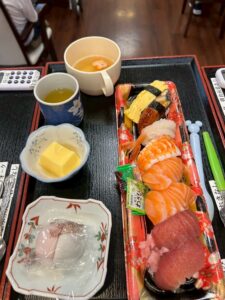 ささやかな記念品とお寿司を召し上がっていただいて、楽しい一日を過ごしていただきました。。。トオモイマス(^^)