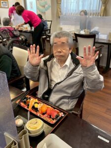 メニューは御寿司と茶わん蒸し、お味噌汁、お饅頭です(^^)